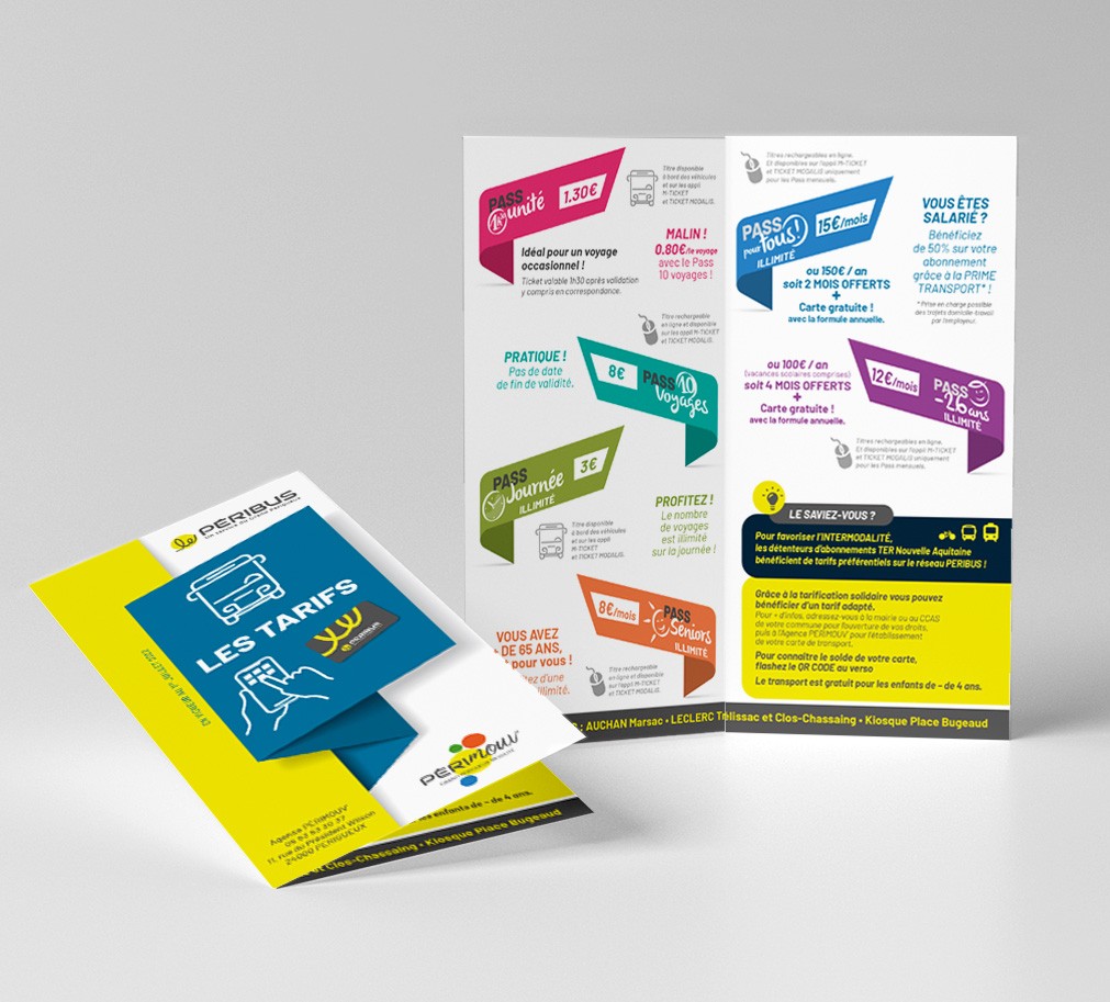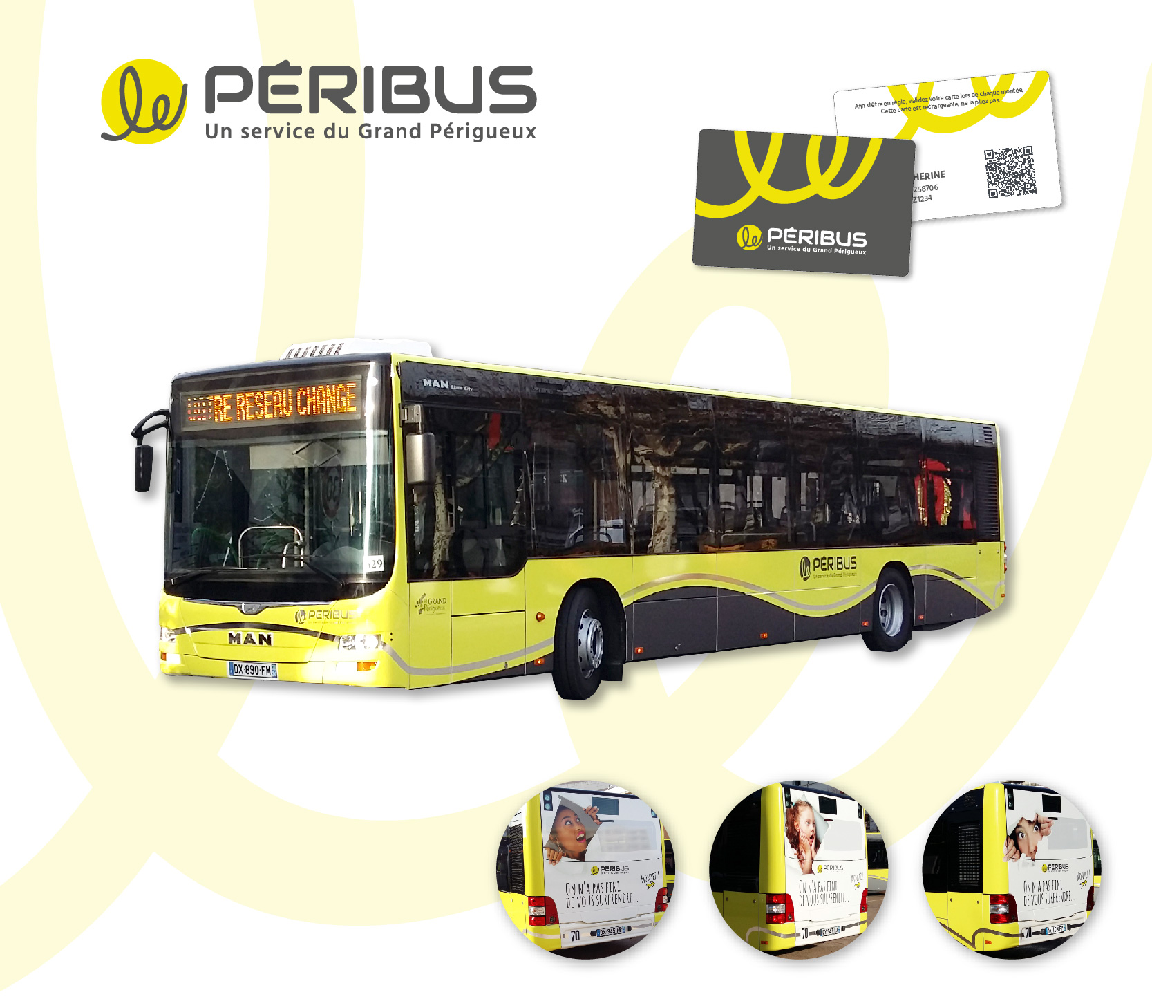 En 2016, j’ai réalisé la nouvelle identité du réseau de bus de l’agglomération du Grand Périgueux. PÉRIBUS devient alors « LE PÉRIBUS » .