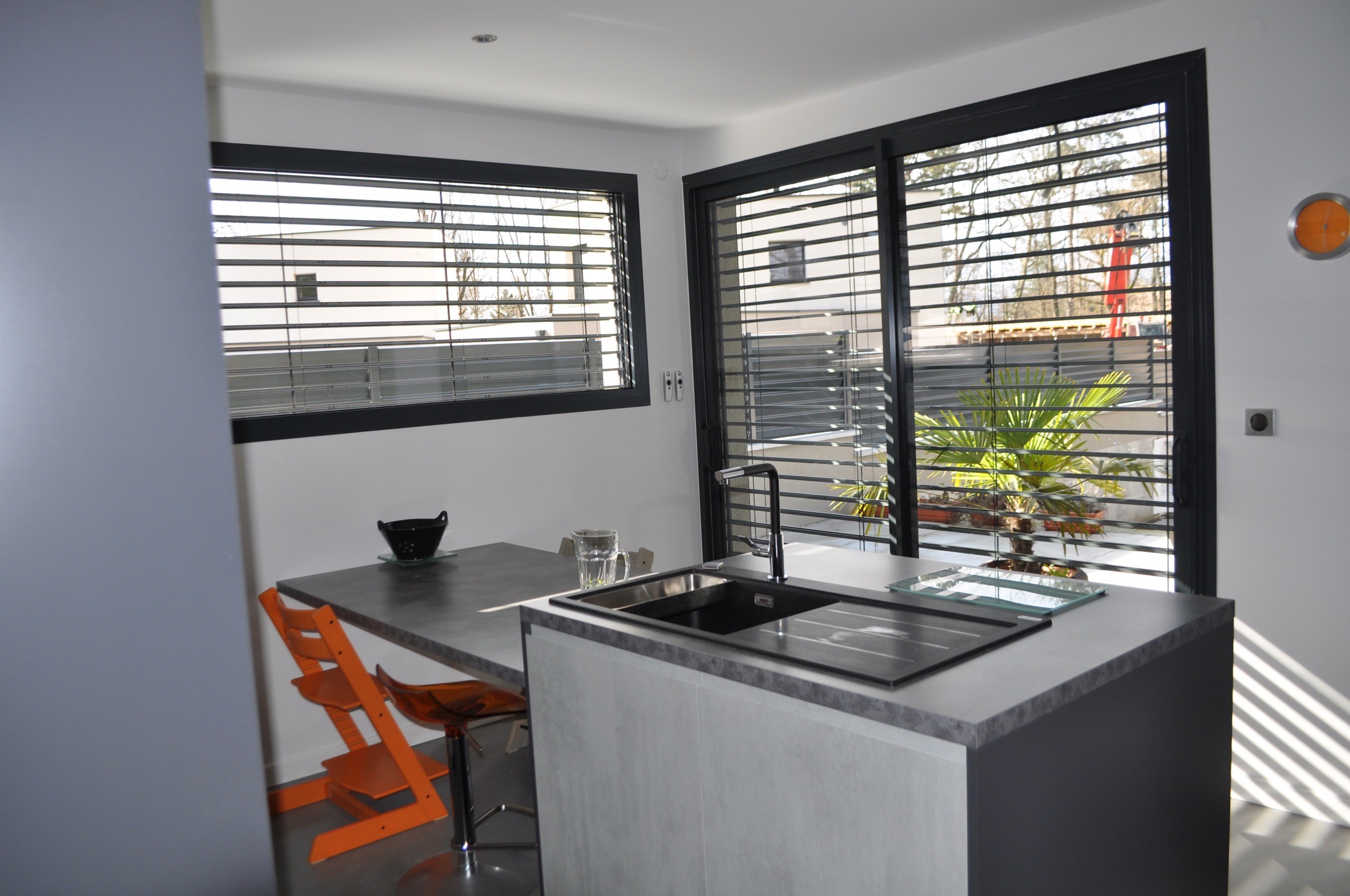 Projet de décoration de la pièce de vie et de la cuisine ouverte d’une maison contemporaine à Lyon 5e.